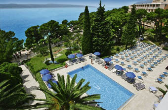 Ruhig und idyllisch inmitten eines Pinienhains oberhalb des Hotelstrandes gelegen. Der Kies- und Sandstrand mit kristallklarem Wasser ist fußläufig zu erreichen und nur durch eine Uferpromenade von der Hotelanlage getrennt. Das Zentrum von Brela ist ca. 400 m entfernt.